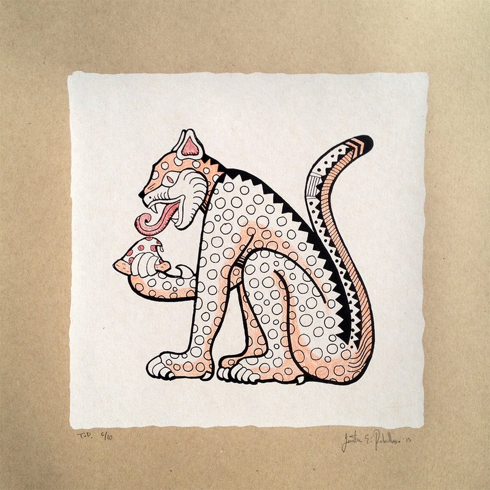 This print was created for an all things pizza and cats themed group show I was invited to be a part of in Austin's Hi5h Gallery.
